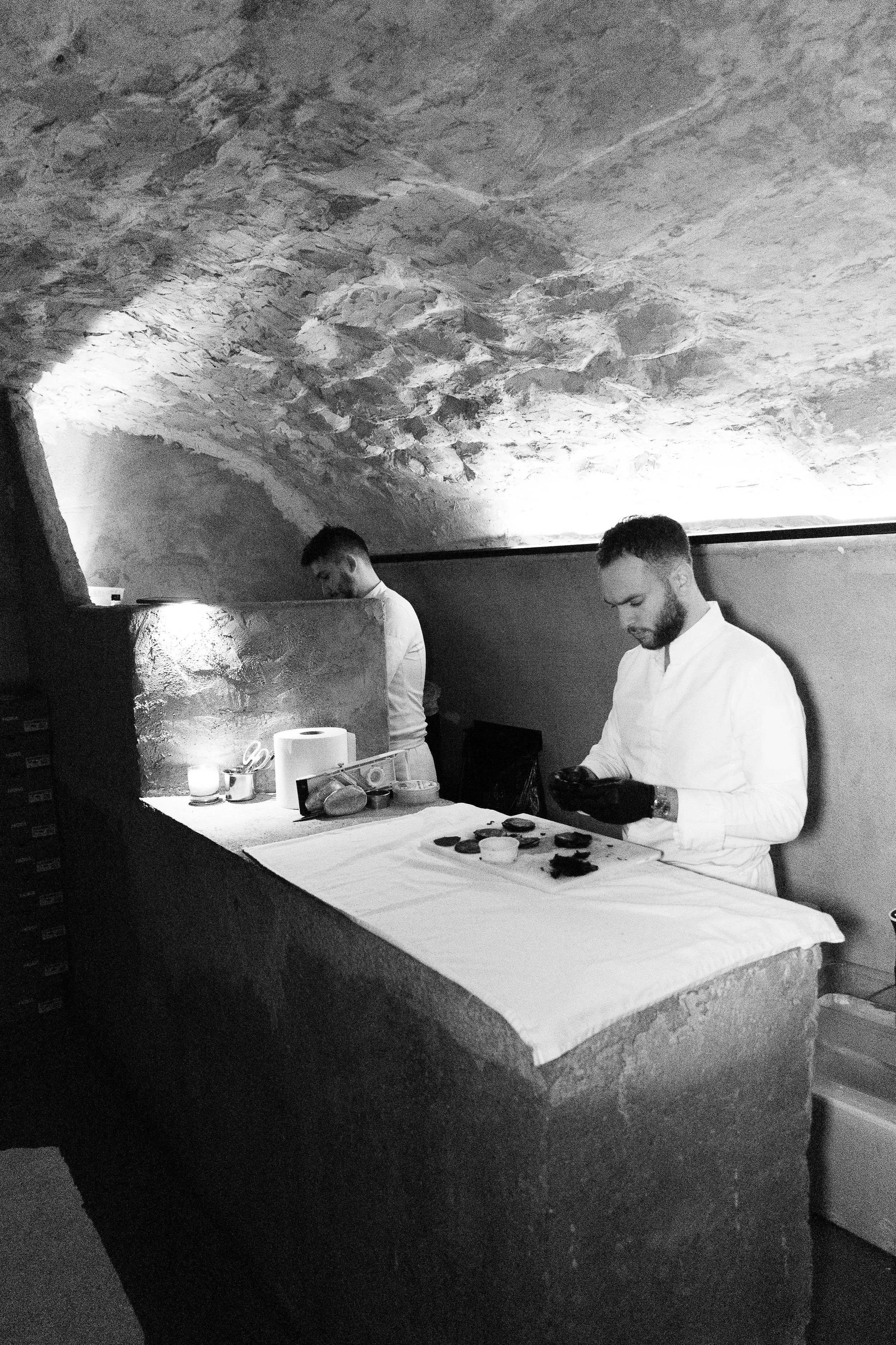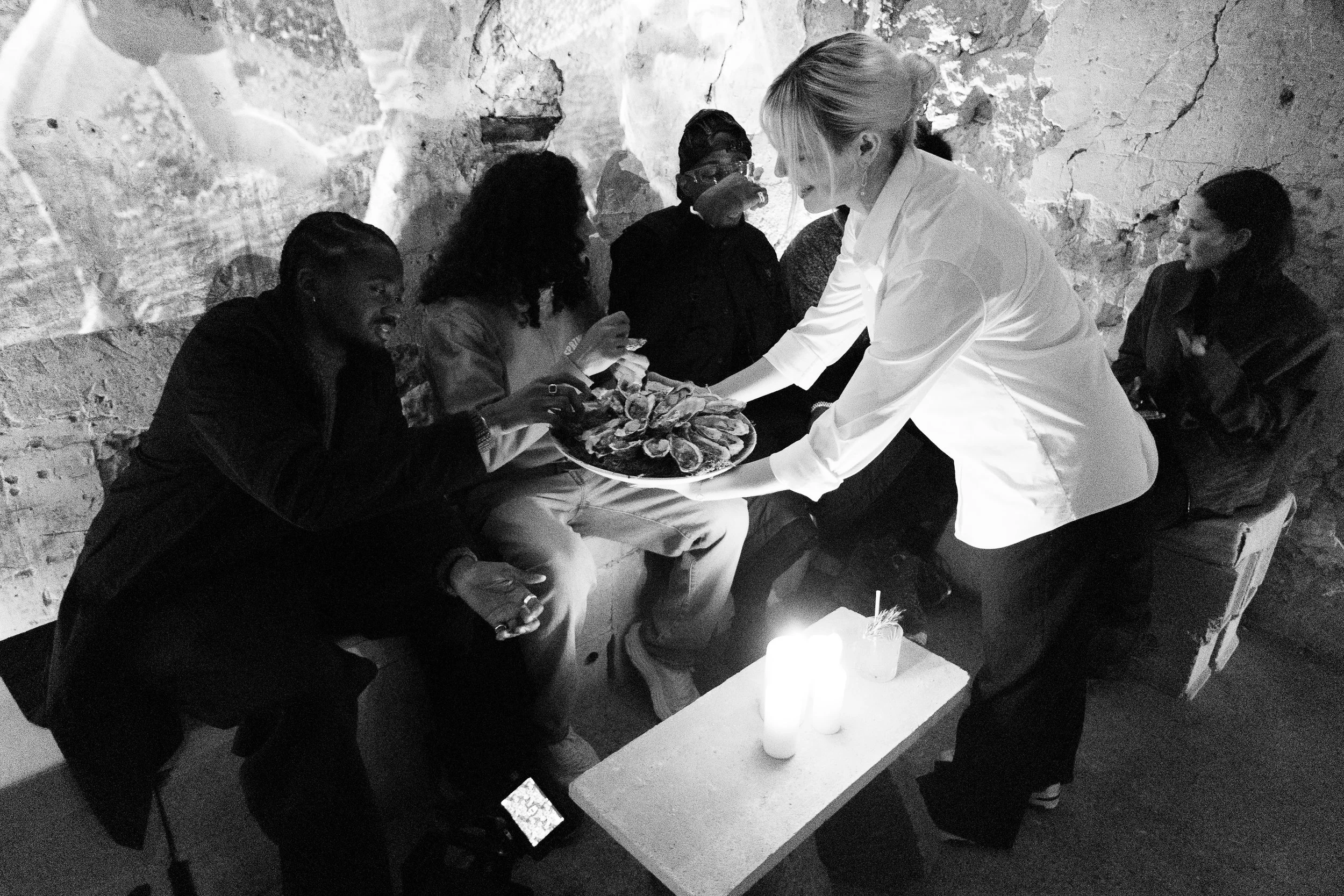For the unveiling of a new Hoka sneaker, Lukas Chemla curated an exclusive dinner in the atmospheric basement of an art gallery in central Paris. Inspired by the brand’s creation, he crafted a dish that echoed the spirit of the sneaker — transforming design into gastronomy.